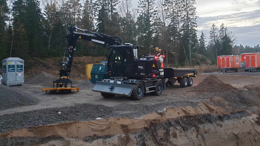 Med vår hjulgrävare Liebherr A916 Compact utför vi alla typer av gräv – och planeringsarbeten. Hjulgrävaren är utrustad med grävsystem den har även en redskapskärra.